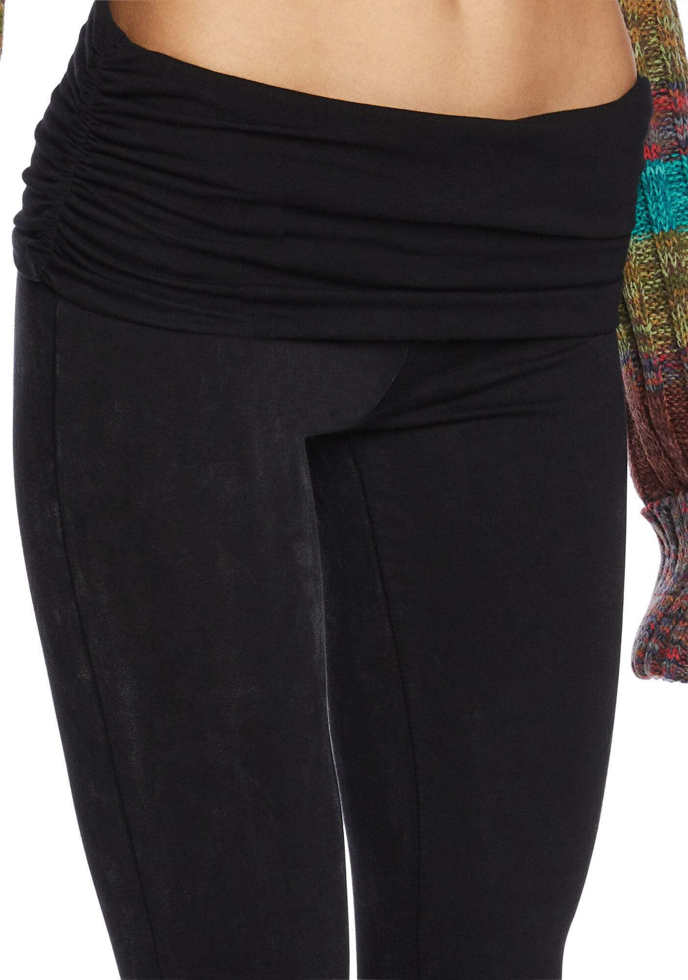 Dolls Kill Dew Morning Flare Pants by Current Mood – Ruched Jersey, Foldover Waistline, Low Rise Fit with Flared Leg
