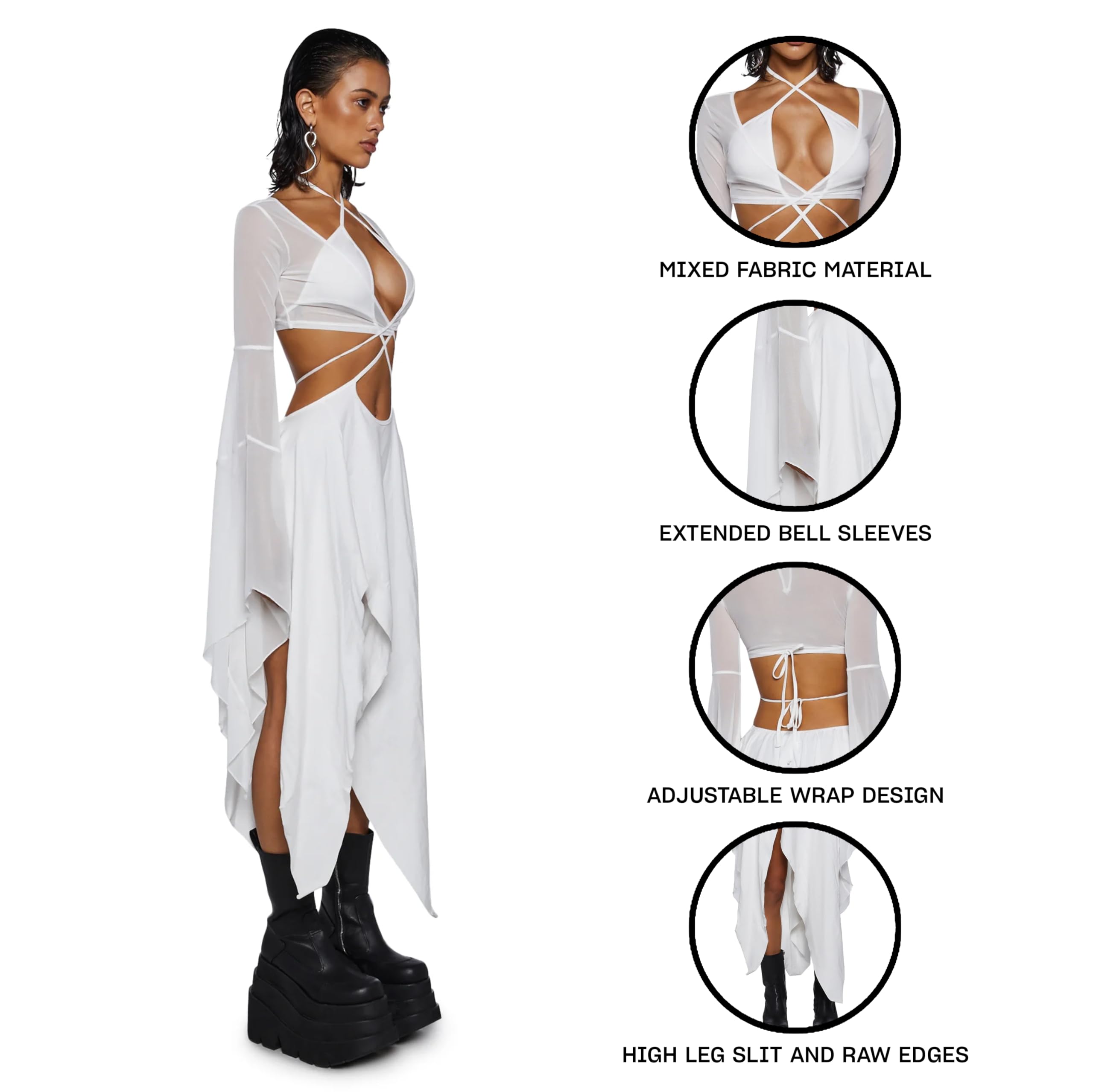Dolls Kill Echo Asymmetrical Mesh Wrap Dress by Darker WAVS – Semi-Sheer Chiffon and Jersey Dress with Bell Sleeves