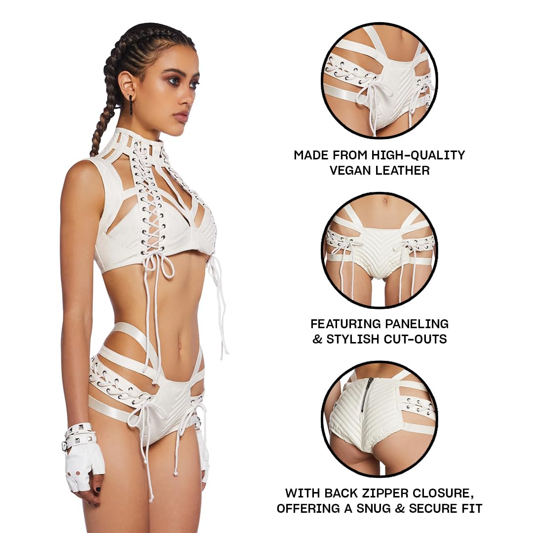 - Vegan Leather Comfort: Made from high-quality vegan leather, these lace-up shorts are soft, comfortable, and lightweight. They're designed to keep you moving and grooving all night long.